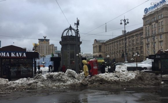 Главная площадь страны, Майдан, в грязном снегу и мусоре, чистить площадь явно никто не собирается.