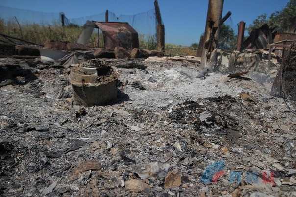 "По выдвижении на место событий представителей СЦКК было выявлено, что было полностью уничтожено домостроение, все хозяйственные постройки, а также гараж, автомобиль и все имущество гражданского человека, который проживал в населенном пункте Желобок", - рассказал на месте происшествия официальный представитель Народной милиции ЛНР подполковник Андрей Марочко.