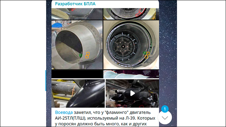 "Фламинго" собран на базе гражданской электроники и двигателей старой советской разработки. Скриншот: ТГ-канал "Разработчик БПЛА"